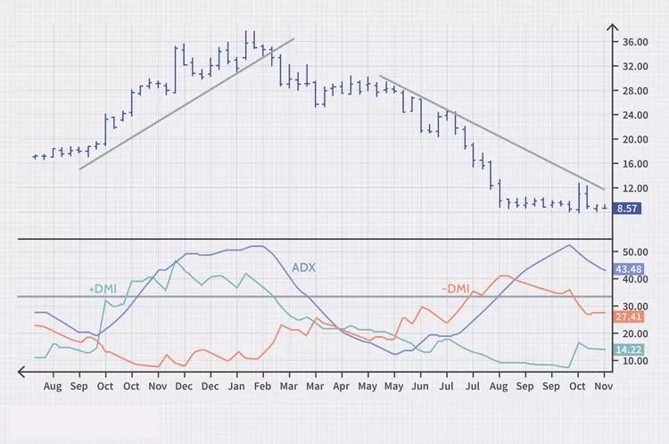 Typically, ADX is displayed in the same chart window alongside the two Directional Movement Indicator (DMI) lines: the +DMI and -DMI. These lines determine the direction of the price movement, while ADX focuses on the intensity of the trend. Specifically, when the +DMI is above the -DMI, it signals that prices are trending upward, and the ADX value increases to reflect the strength of the uptrend. Conversely, when the -DMI crosses above the +DMI, it indicates a downtrend, and the rising ADX value measures how strong that downtrend is.