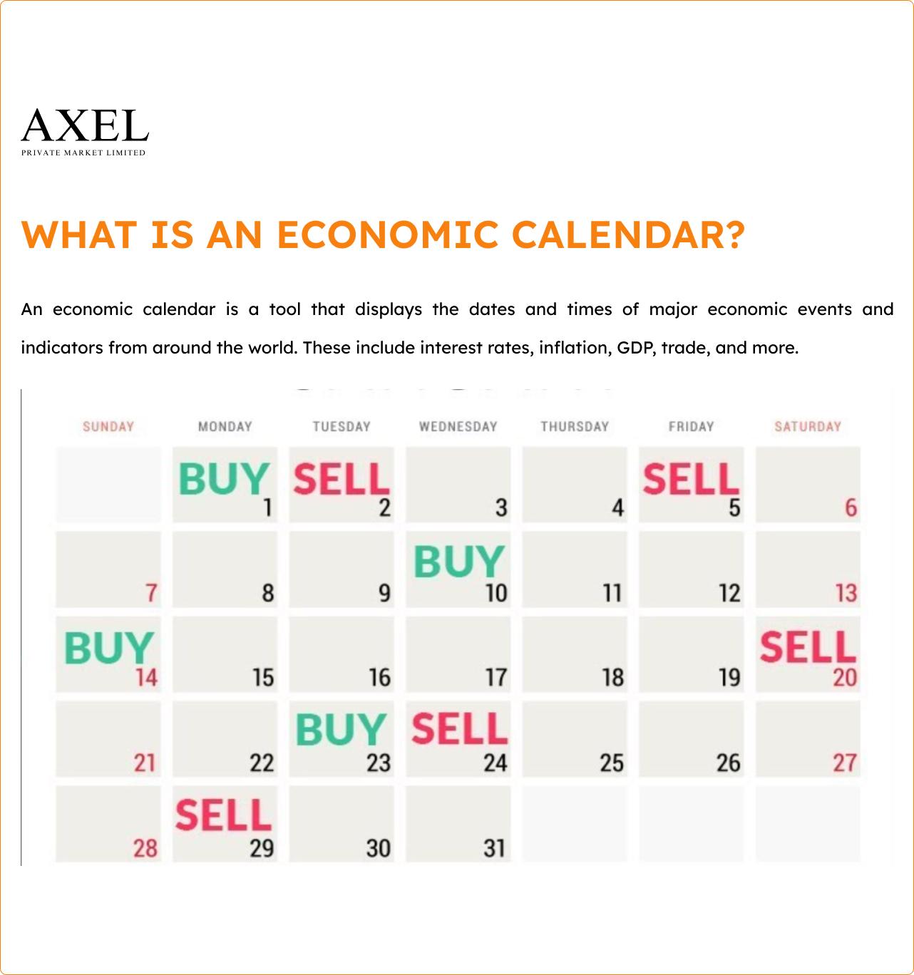– An economic calendar is a tool that displays the dates and times of major economic events and indicators from around the world. These include interest rates, inflation, GDP, trade, and more.