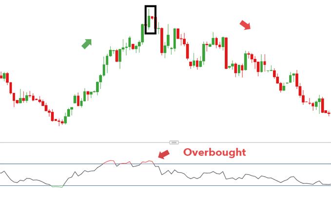 4. Confirm the placement of the bearish candle: The small red candle should be completely enclosed within the body of the previous bullish candle.