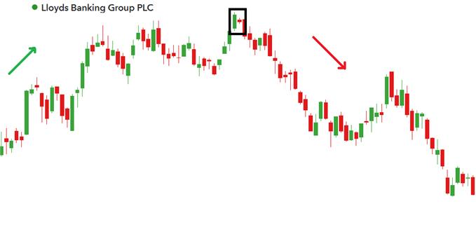 As a result, the traditional Harami pattern may appear with noticeable gaps between candles, as seen in the example for FTSE 100 stock, Lloyds Banking Group PLC: