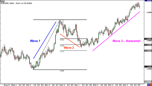- Entry Point: Look for Wave 2 to bounce off a strong Fibonacci level like the 38.2% or 50% retracement.