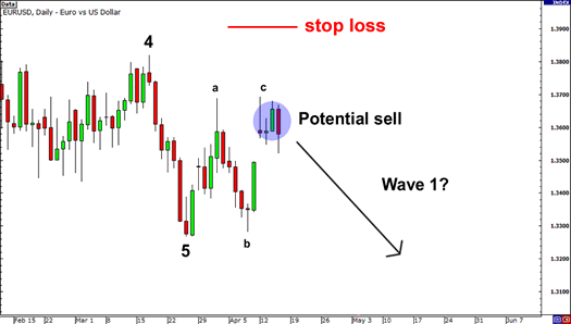 • Entry Point: Sell near the peak of Wave B or early in Wave C.