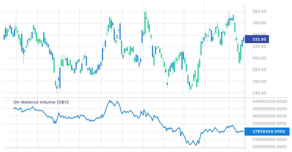 OBV = Previous day’s OBV + Current day’s volume, if the current day’s closing price is higher than the previous day’s.