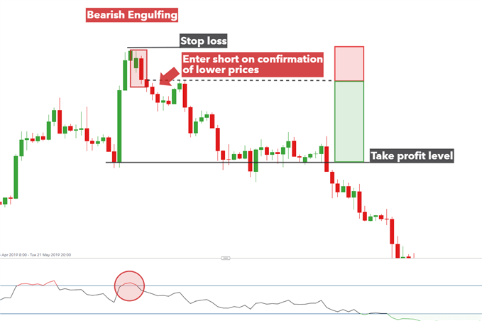 When trading the bearish engulfing pattern, traders can wait for confirmation of the move by observing subsequent price action or by waiting for a pullback before initiating a trade.