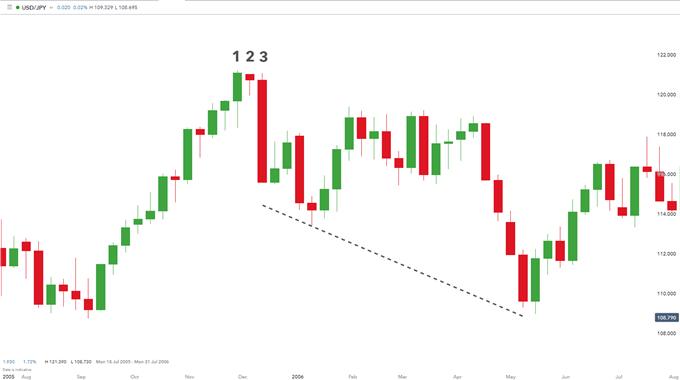 Example: The Bearish Harami illustrated above shows a reversal pattern forming, with the reversal happening at a medium-term high. Reversal signals are often stronger when they occur at significant price levels, such as support, resistance, or previous highs and lows.
